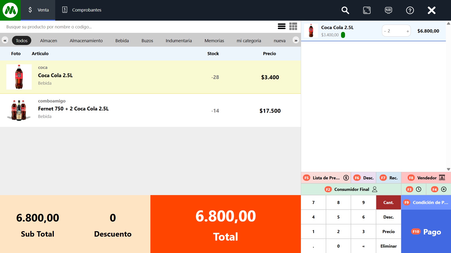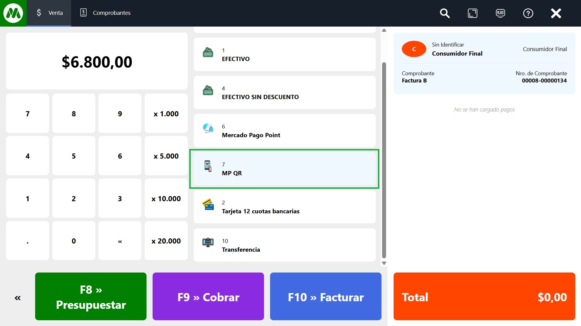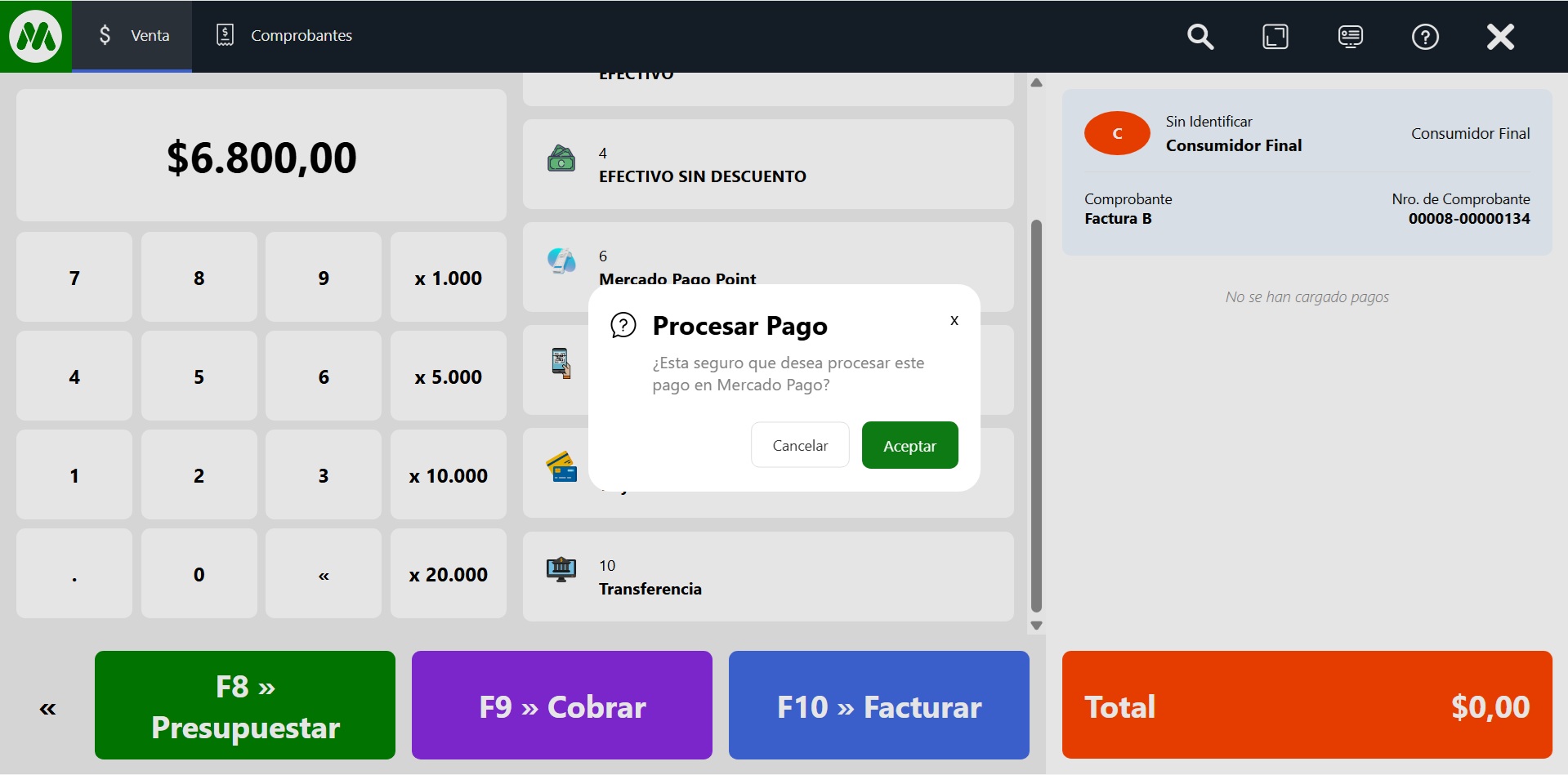 Seleccionar el medio de pago: Estando en el POS, una vez que cargaste el carrito de compras