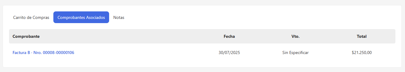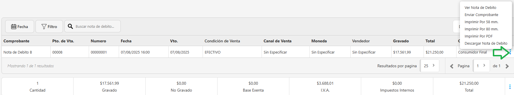En esta pestaña vas a encontrar la factura asociada a esa Nota de Débito.