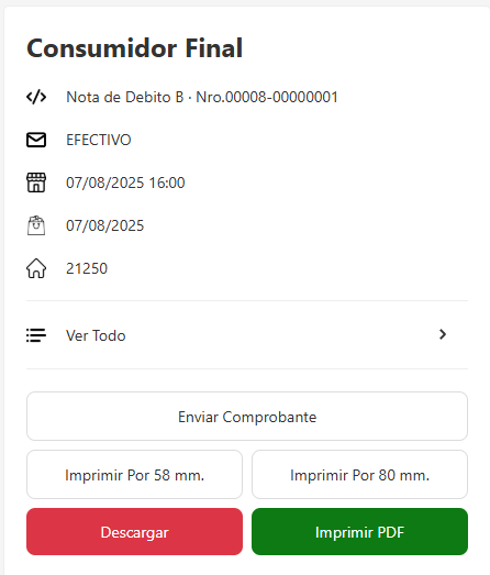 Ver Nota de Débito: es una vista rápida con los datos principales del comprobante.