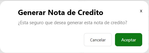 Cuando todo esté listo, hacé clic en Generar Nota de Crédito y Aceptar para finalizar el proceso.