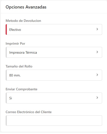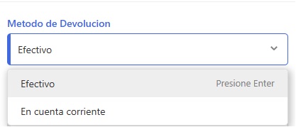 Selecciona el Método de devolución.