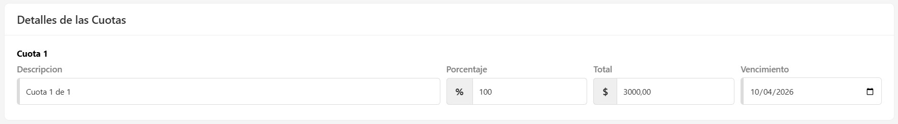Si tenemos un importe total de $170.000, hecho en 3 cuotas iguales, el porcentaje será 33,33% de cada cuota, lo que dará un importe de $56.661 x 3 = $169.983. Hay una diferencia de $17. Esa diferencia se agregará automáticamente a la primera cuota quedando así
